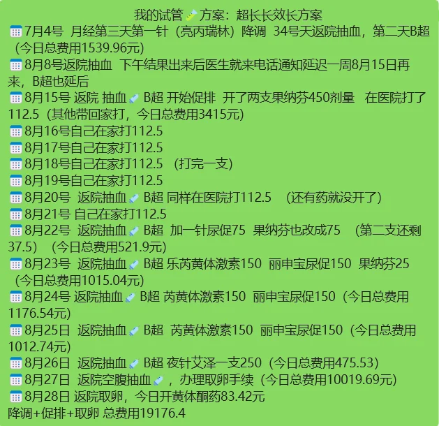 📅8月27日 返院空腹抽血💉,办理取卵手续(今日总费用10019.69元)